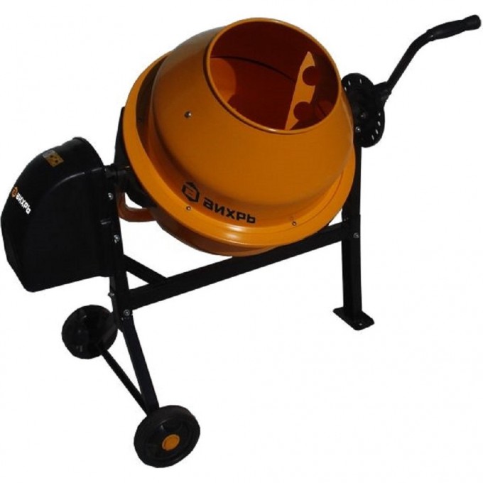 Модель электрической бетономешалки Вихрь БМ-63 является самой младшей в линейке, недорого стоит и используется для приготовления бетонных и других строительных смесей, а также для перемешивания сухих материалов строительного и сельскохозяйственного назначения. Бетономешалка состоит из переднего кронштейна, верхнего и нижнего полубаков, лопастей для размешивания, блока двигателя, поперечной балки, поддерживающей опоры и пары транспортировочных колёс. Агрегат относится в категории бетономешалок гравитационного типа, когда смешивание материалов происходит за счёт вращения барабана с неподвижными лопастями внутри. Мощность модели Вихрь БМ-63 составляет – 220 Вт. Объём бака – 63 л. Скорость вращения барабана – 27.5 об/мин. Диаметр отверстия для закладки материалов – 240 мм.