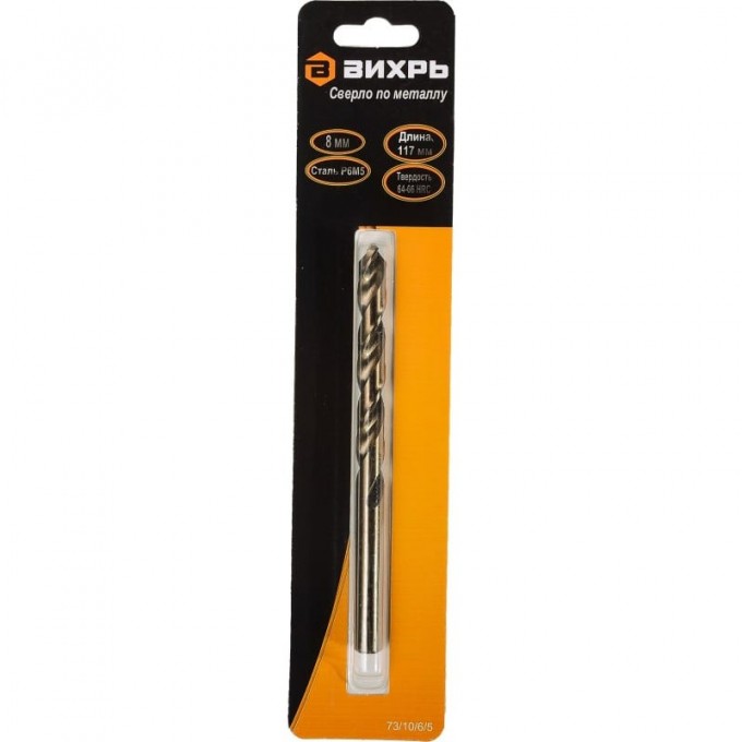 Сверло по металлу ВИХРЬ 8 мм, P6M5 (1 шт. в блистере) 73/10/6/5